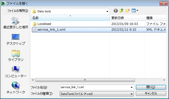 ダイアログ ボックスで、必要な DataTools ファイルがあるフォルダに移動してそのファイルを選択し、
