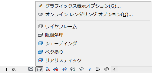 作図領域の下にあるビュー コントロール バーで、[表示スタイル]アイコンをクリックして、オプションを選択します。