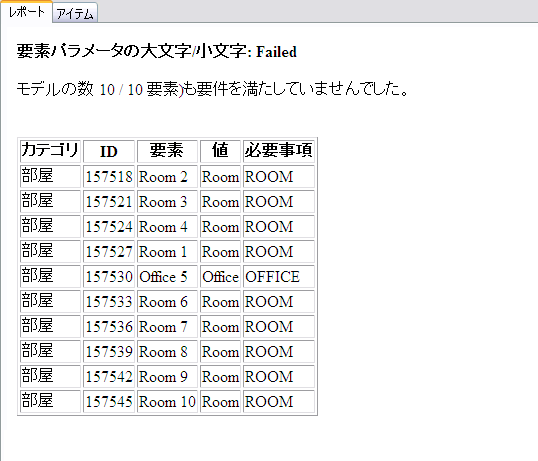 | ElementTable | 不合格だったすべての要素を表示するテーブル。 |