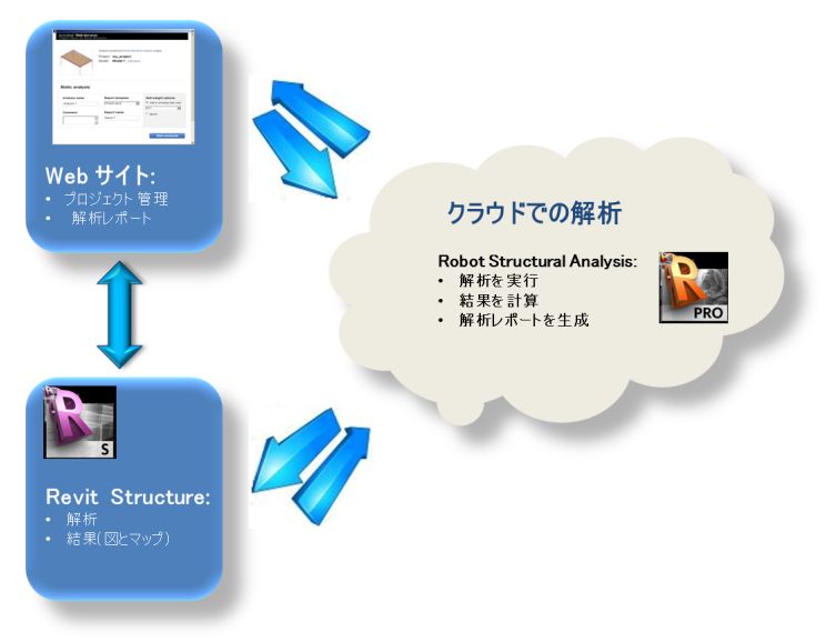 Autodesk® 360 Structural Analysis for Autodesk® Revit® ソフトウェアは Structural Analysis for Autodesk Revit と呼ばれ、Revit Structure 解析モデルのクラウドベースの構造解析を行うことができます。∙結果は Revit プロジェクトに表示され、詳細を確認できます。