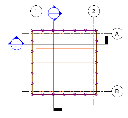 床の角の選択後、構造床の上にエリアがロードされます。荷重は、プロジェクトの座標系で、負の Z 軸方向に配置されています。