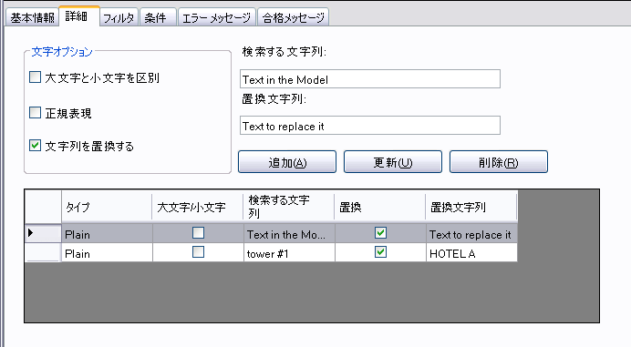 | 説明: | 文字注記内に制限された文字があるかどうかをチェックします。見つかった文字を置き換えることもできます。 |