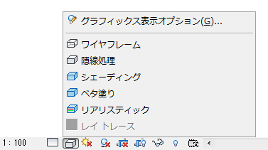 作図領域の下にあるビュー コントロール バーで、[表示スタイル]アイコンをクリックして、オプションを選択します。