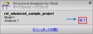メッセージ ウィンドウの完了リンクをクリックすると、解析レポートを Web サイトでも表示できます。