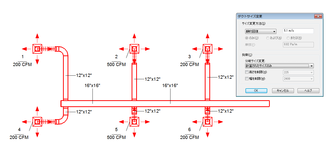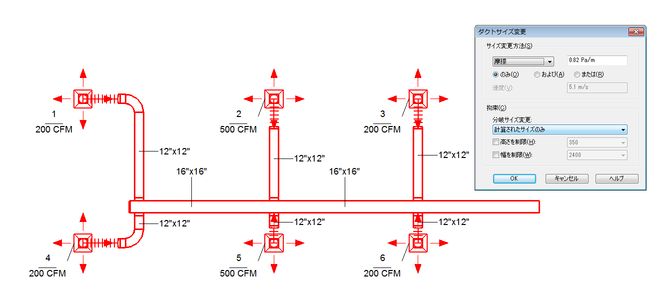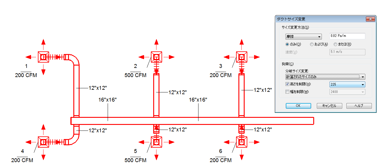 次の図は、さまざまなダクト サイズ変更方法の結果を示しています。