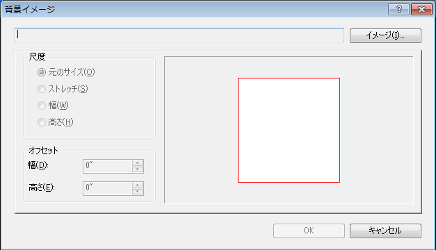 - [背景イメージ]ダイアログで、[尺度]と[オフセット]を指定して[OK]をクリックします。