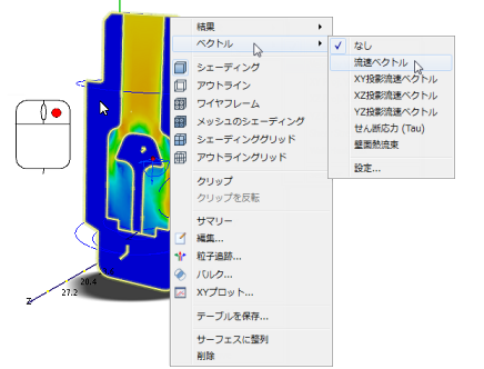 2. ベクトルを表示するには、平面を右クリックし、[ベクトル]、[流速ベクトル]をクリックします。