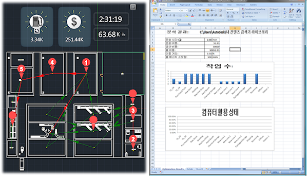 팩토리 배치를 분석하여 운송 비용과 기계 활용도를 파악할 수 있습니다. 배치를 분석한 다음 이를 수정하고 다시 분석하여 팩토리 배치를 최적화합니다.