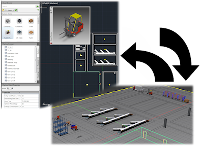 - 업데이트가 완료되면 원래 3D 팩토리 배치의 변경 사항이 2D 도면에 반영됩니다.