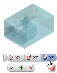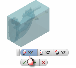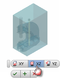 - 선택한 구성요소를 배치에 필요한 위치로 끈 후 마우스 왼쪽 버튼을 눌러 구성요소를 삽입합니다. 이 구성요소는 경계 상자 안에 표시됩니다. 경계 상자의 측면은 구성요소 원점 평면과 평행합니다. 삽입점은 원점 좌표계를 따라 경계 상자의 구석에 정렬됩니다.