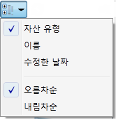 정렬 기준 아이콘에서 아래쪽 화살표를 클릭하여 정렬 옵션 드롭다운 메뉴를 표시합니다.
