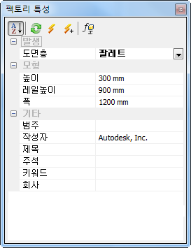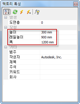 - 배치 후 자산의 치수(피트 솔리드 벽 두께 포함)를 수정하려면 팩토리 특성 브라우저에서 해당 매개변수 값을 편집합니다.