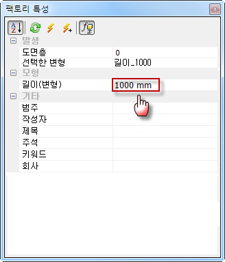 - 변형 매개변수 이름에 대한 새 값을 입력하고 Enter 키를 누르거나, 팩토리 특성 브라우저 상단의 업데이트 버튼