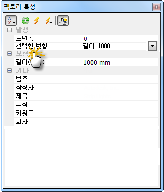 - 리스트에서 원하는 매개변수를 선택하고 Enter 키를 누르거나, 팩토리 특성 브라우저 상단의 업데이트 버튼