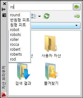 자산 브라우저의 맨 위에 있는 자산 검색 도구를 사용하면 연속 상세 검색을 수행할 수 있습니다.