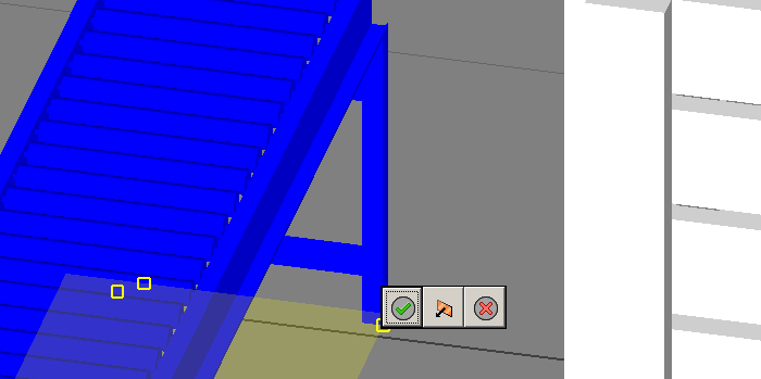 - 모형의 세 점을 클릭하여 계단 모양 표면이 될 평면을 정의합니다.