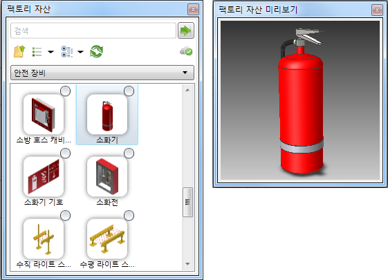 | 미리보기 | 자산의 썸네일 이미지를 별도 창에 표시합니다. |