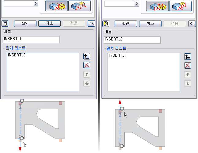 부품을 삽입하고 조립품에 구속시킬 때 일치시킬 구속조건 형태를 지정합니다. |