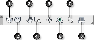 | 4. 줌 도구. 모형의 현재 뷰를 확대하거나 축소하기 위한 탐색 도구 세트입니다. | 8. 3Dconnexion 3Dconnexion 3D 마우스로 모형의 현재 뷰 방향을 조정하는 데 사용되는 탐색 도구 세트입니다. |