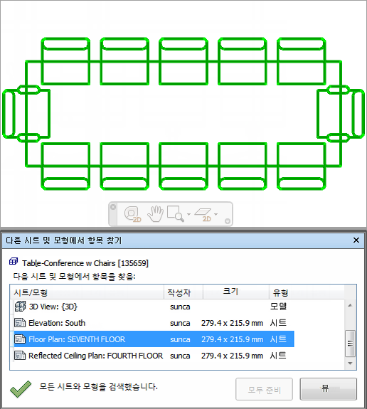 이 표시된 경우 모두 준비 버튼을 클릭합니다. 모든 시트/모형이 준비되면 해당 객체가 포함된 모든 시트/모형의 리스트가 표시됩니다.