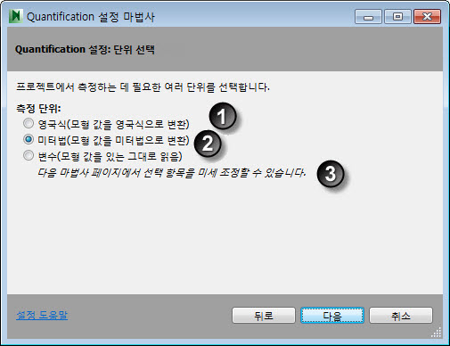 프로젝트에서 사용할 측정 단위를 선택합니다.