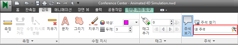 주석 빠른 찾기 문자 상자에 모든 주석에서 검색할 문자열을 입력합니다. 이 문자는 한 단어나 몇 개의 단어일 수 있습니다. 따라서, 예를 들어 수정 지시를 입력하고 검색을 실행하면 하나의 "수정 지시" 단어가 포함된 주석만 반환됩니다.