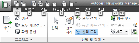 Autodesk Navisworks에서는 마우스 대신 키보드를 사용하여 응용프로그램 창과 상호작용할 수 있도록 바로 가기 키 또는 키 팁을 제공합니다.