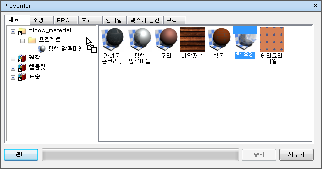 왼쪽 창의 폴더 간에 재질을 끌어다 놓거나 상황에 맞는 메뉴의