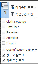 리본에서 뷰 탭을 클릭한 다음, 작업공간 메뉴에서 창 드롭다운을 클릭하고 Quantification 통합 문서, 항목 카탈로그 또는 자원 카탈로그를 선택합니다.