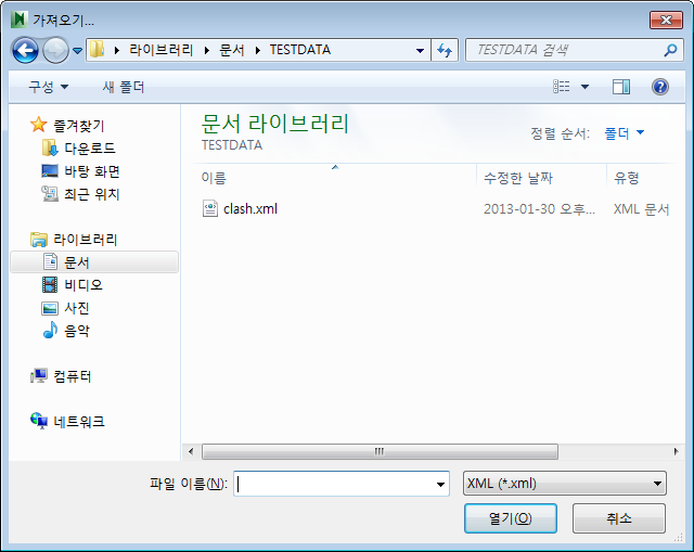 대화상자에서 간섭 테스트 데이터를 포함하는 폴더를 찾은 다음