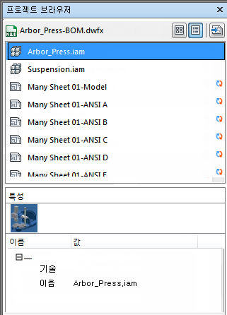 프로젝트 검색기는 현재 열려 있는 파일에 있는 모든 시트/모형을 나열하는 고정 가능한 창입니다.