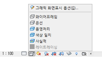 도면 영역 하단의 뷰 조절 막대에서 비주얼 스타일 아이콘을 클릭하고 옵션을 선택합니다.