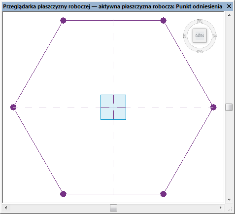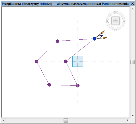 Przeglądarka płaszczyzny roboczej jest dostępna we wszystkich widokach modelu w środowisku projektu. Domyślna orientacja jest zgodna z aktywną płaszczyzną roboczą ostatniego aktywnego widoku.