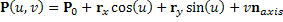 A plane defined by origin and unit vectors in U and V. Its parametric equation is