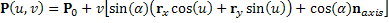 The parametric representation of this surface, between nodes (u1, v1) and (u2, v2) is:
