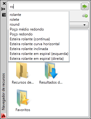 A ferramenta de pesquisa de recursos, localizada na parte superior do Navegador de recursos, fornece uma pesquisa continuamente refinada.