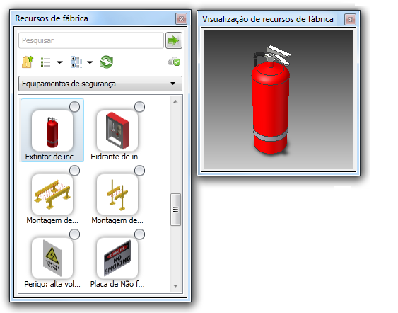 O Navegador de recursos fornece acesso aos Recursos do sistema, Recursos do usuário, Recursos baseados em nuvem e aos resultados da pesquisa de recursos.