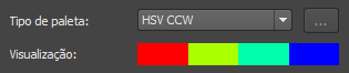 Determina as cores provisórias entre a matiz da Cor de e a matiz da Cor para no sentido anti-horário. |