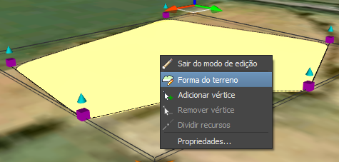 - Clique com o botão direito do mouse sobre a área de cobertura para abrir o menu de contexto e selecione Forma do terreno.