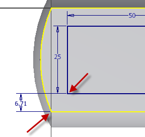 - As arestas da face selecionada são projetadas automaticamente. A opção Projetar automaticamente arestas para criação e edição de esboços da guia Esboço da caixa de diálogo Opções do aplicativo também está ativada.