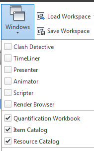 A interface de usuário (UI) do Quantification consiste em uma Quantification Workbook, um Item Catalog e um Resource Catalog. Os catálogos definem a estrutura organizacional do seu projeto e geralmente contêm grupos de itens e materiais que serão utilizados para o levantamento. É possível abrir qualquer quantidade dessas janelas em uma sessão.