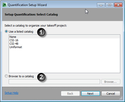 1. Utilizar um catálogo listado.Os catálogos listados aqui são aqueles utilizados com mais frequência pela sua empresa e devem ter sido integrados por seu engenheiro de TI antes de você utilizar o Quantification.