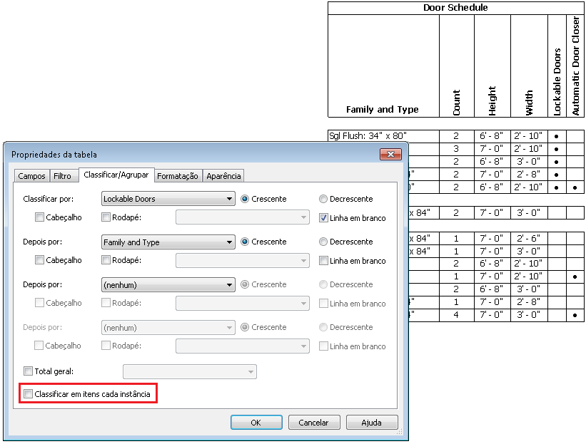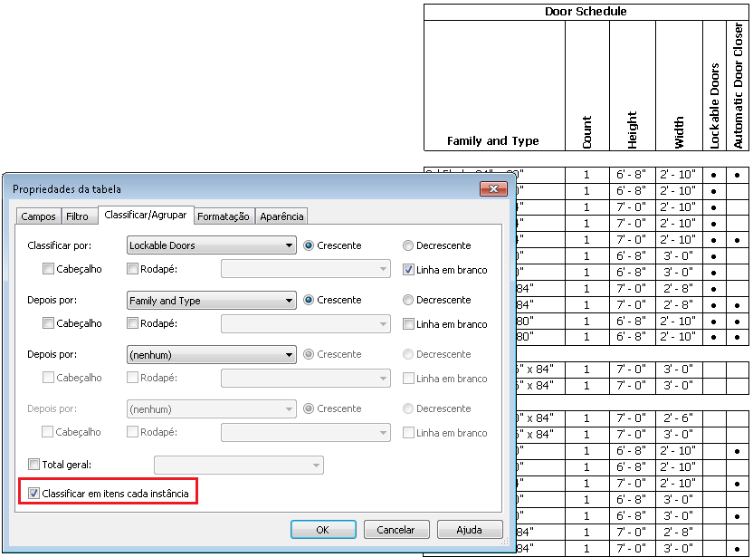 As imagens a seguir mostram a mesma tabela, a primeira com a opção Relacionar cada instância selecionada, e a segunda com esta opção desmarcada.