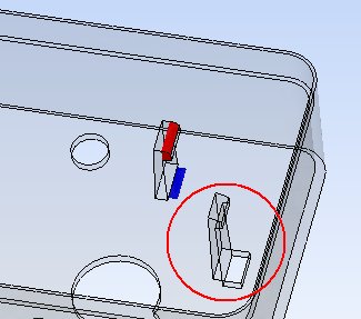 Por exemplo, a Figura 1. abaixo mostra uma saída negativa (vermelho) numa funcionalidade de "dedo preso". A sombra é apresentada em azul. Este tipo de saída negativa requer geralmente ajustes dispendiosos como a utilização de um elevador ou barra de deslize para assegurar que a peça pode ser ejetada.