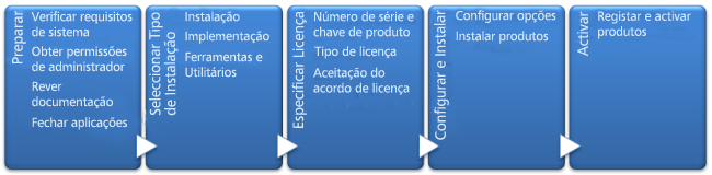 O diagrama seguinte mostra as principais partes do processo de instalação: