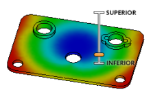 O indicador da Distância vertical tem duas marcas que mostram a elevação máxima (SUPERIOR) e mínima (INFERIOR) possível para a visualização. Ao alterar a elevação com o indicador da Distância vertical, a elevação atual é apresentada pelo indicador cor-de-laranja brilhante, enquanto a elevação anterior é apresentada pelo indicador cor-de-laranja escurecido.