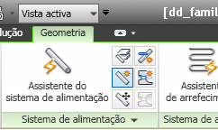 Selecionar (), clique na base do gito e, arrastando, afaste o ponteiro do gito, na direção do ponto de injeção. Aparece uma linha amarela fina que termina com uma pequena esfera amarela. Esta esfera indica o fim do canal. Como a opção Ajustar à grelha na caixa de diálogo Criar canal de alimentação está selecionada, a esfera saltará para a interseção da grelha mais próxima.