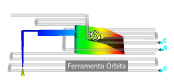 A ferramenta Órbita permite-lhe alterar a orientação de um modelo de forma tridimensional. À medida que arrasta o cursor, o modelo roda em torno de um ponto pivô, enquanto a visualização permanece fixa.