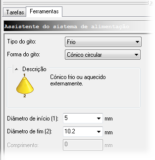 Introduza 10,2 mm como Diâmetro final (2).