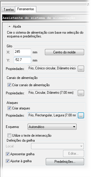 Clique em Centro do molde